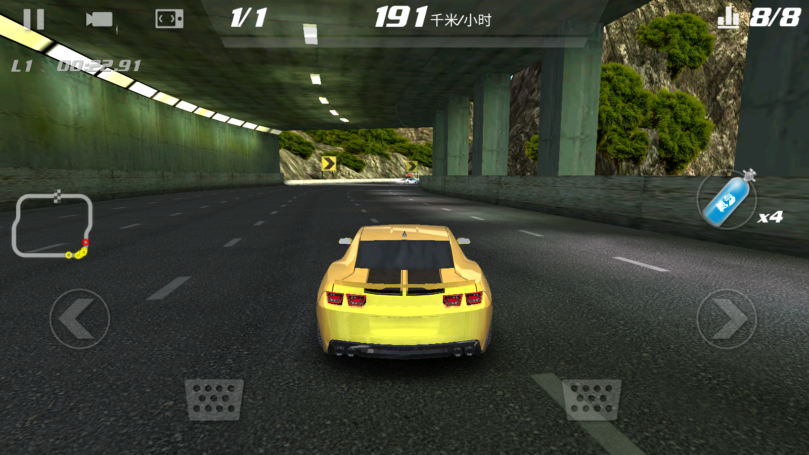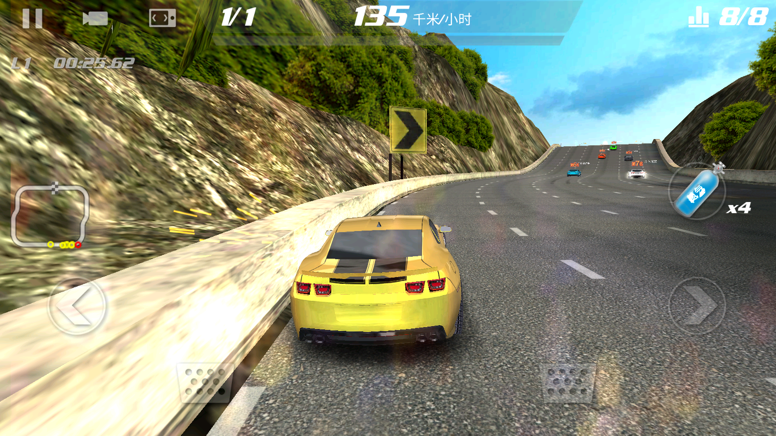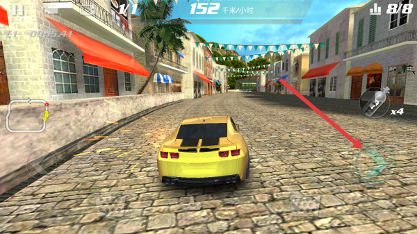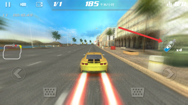 3、通过点击屏幕左右两侧的方向按键,控制车辆向左或向右转向,灵活躲避障碍、调整赛道位置。
