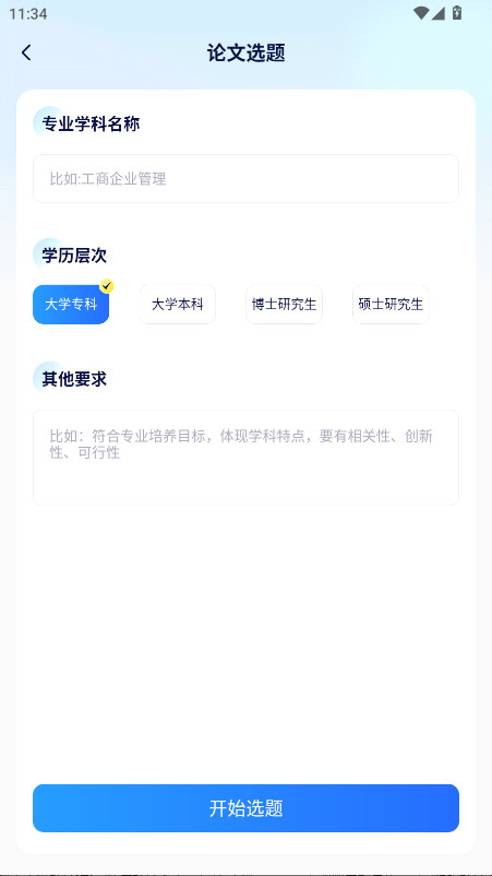 AI论文写作助手app是一款专为学生和研究人员设计的智能写作工具。我们致力于通过人工智能技术,帮助用户更高效地完成论文写作。这款应用能根据你输入的关键词或主题,快速生成论文大纲和结构,为你提供清晰的写作思路。我们内置了丰富的学术资源库,能为你提供相关的文献参考和论证素材,帮助你充实论文内容。无论是选题、文献综述,还是数据分析和结论撰写,AI论文写作助手都能为你提供有力的支持。