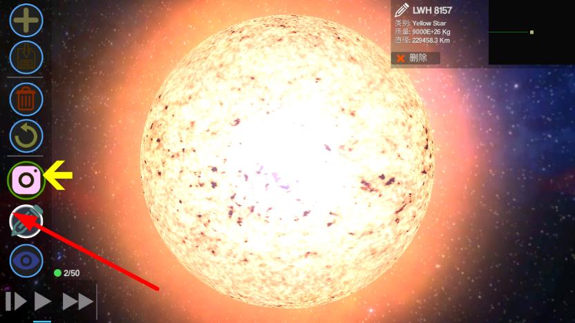 1、进入游戏后选择空白宇宙区域,点击界面调出属性面板,设定恒星的基本参数,开启星系创造的第一步。