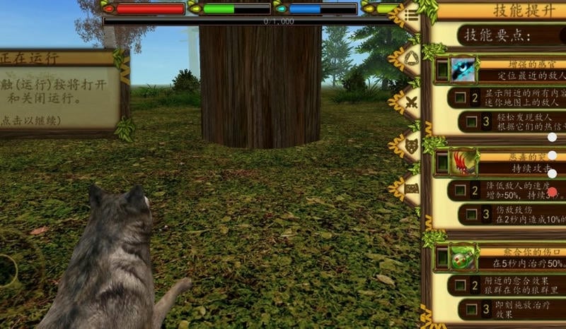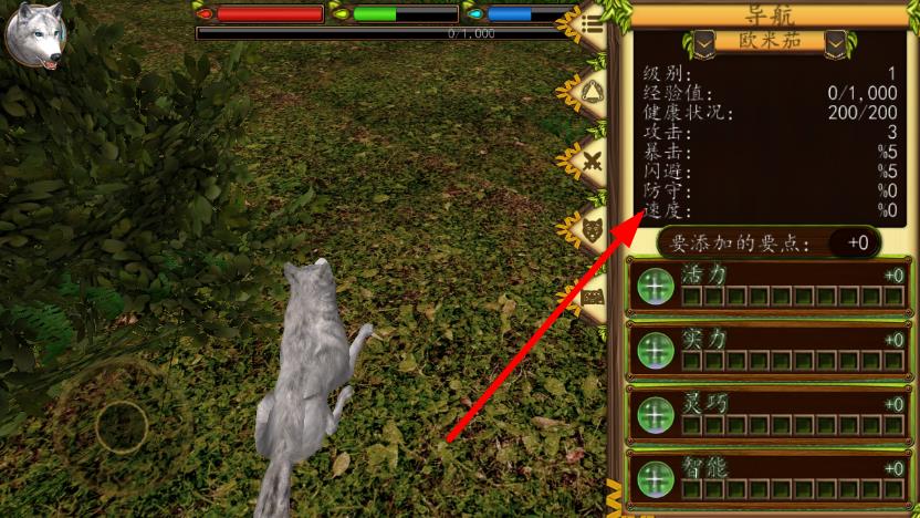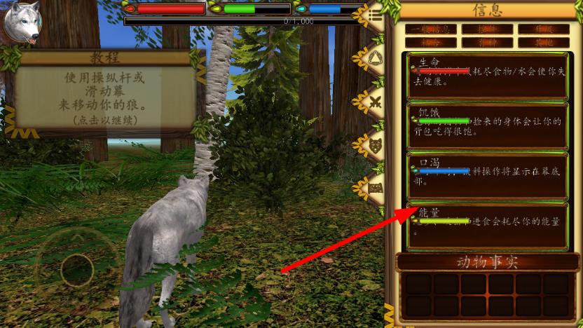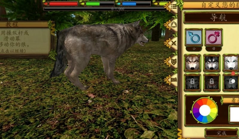 1、进入游戏后创建灰狼角色,自定义外观与初始属性,在森林场景中熟悉灰狼的移动、跳跃、嗅探等基础动作,了解生存环境中的资源分布。