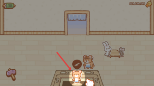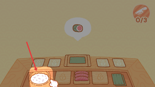 1、在餐厅场景,点击站在操作台前的小熊角色,开启寿司制作互动流程,准备为顾客制作料理。