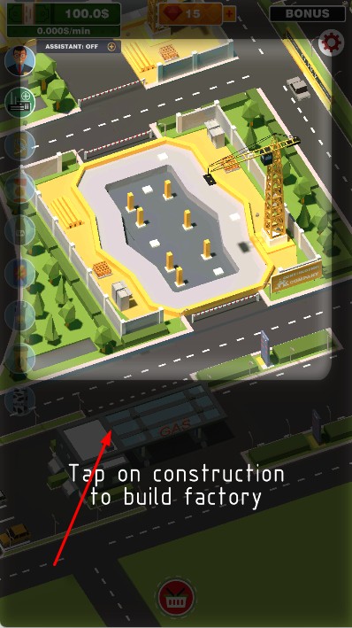 1、进入场景,点击Tap on construction to build factory提示位置,建造饮料工厂。