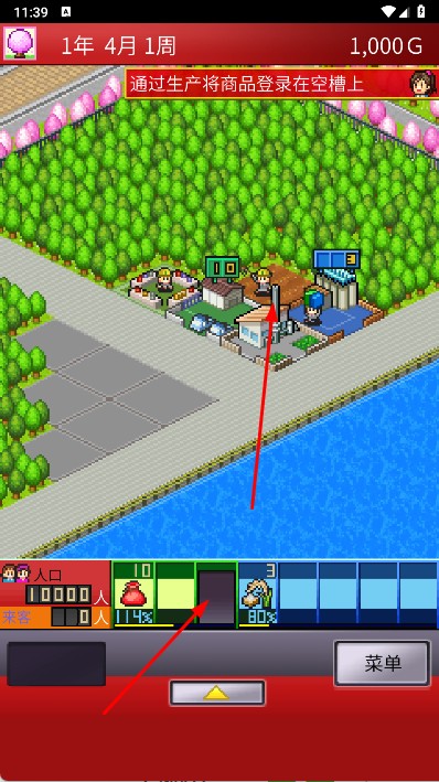 1、进入游戏,在标题界面,点击开始,在港口场景,依据提示通过生产将商品登录在空槽上,点击下方空槽,进入生产界面。