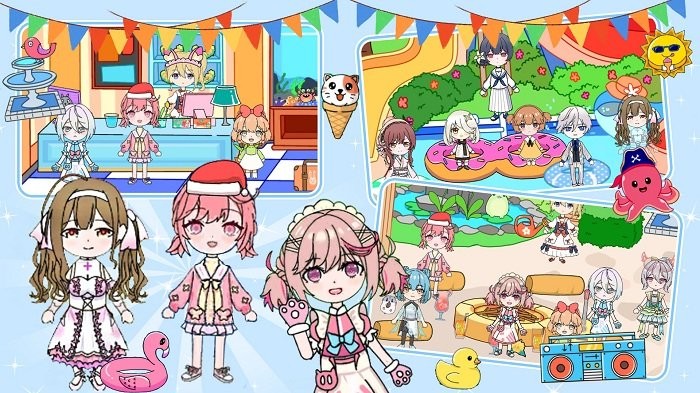 3、丰富场景与社交互动:解锁不同场景结识游戏NPC和其他用户,共同体验恋爱、开派对、度假等精彩人生故事;在假日时光里,可与闺蜜、家人享受家庭美食。