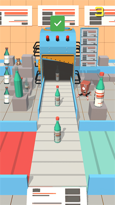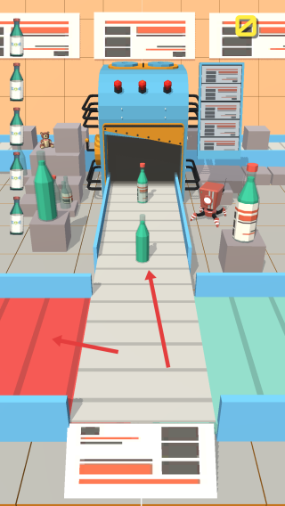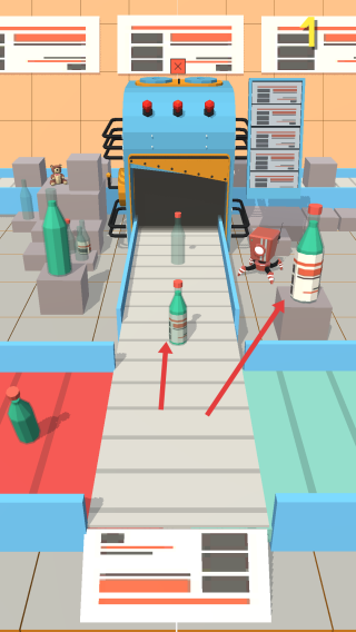 2、按箭头指引,把不同瓶子移到对应区域,像将特定瓶子放到指定传送带,确保流程顺畅,别让瓶子堆积。