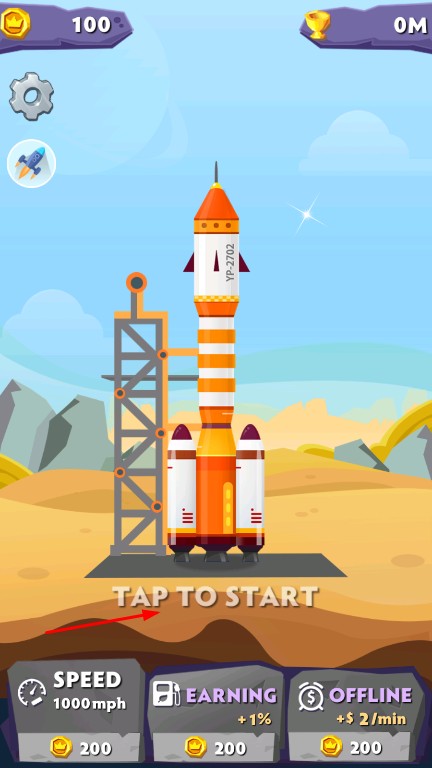 1、进入游戏,在主界面点击TAP TO START,火箭发射后,飞行过程中屏幕左侧会出现高度进度条,显示火箭飞行高度对应的数值。