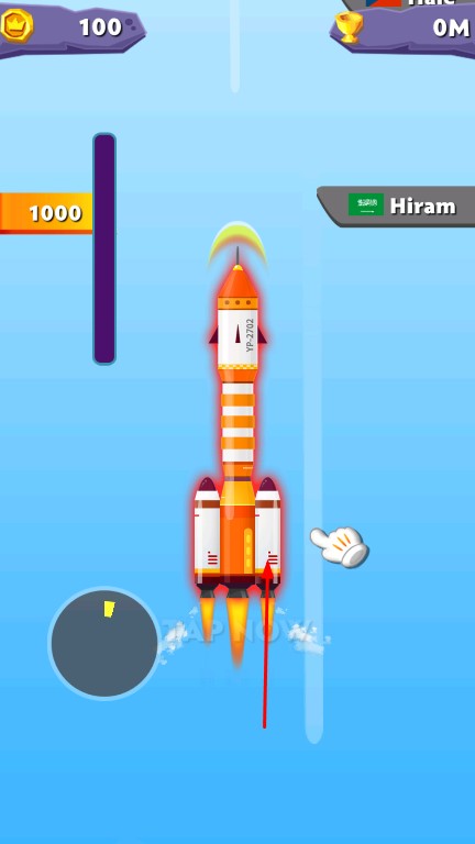 2、飞行互动元素丰富:火箭升空后,空中出现数值标识、互动区域,如手指点击,通过点击、滑动操作触发,影响飞行进程与收益获取。