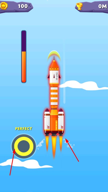1、操作反馈即时清晰:点击火箭即刻发射,飞行中操作互动区域,触发PERFECT等提示与金币奖励,每一步操作都有直观反馈,增强参与感。