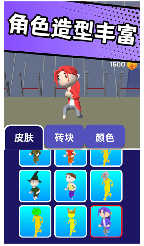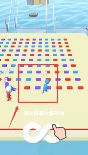 1、进游戏先认准自己角色的颜色,只捡同色地砖,滑动控制走位,快速收集砖块搭楼梯,颜色不对的别碰,避免浪费时间。