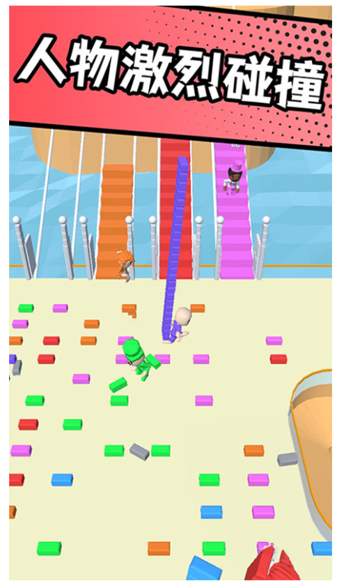 3、想赢就得又快又稳,优先规划最短路径,别贪多收集,手速要快,预判下一层入口位置,提前搭好桥冲向终点。