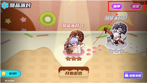 1、进入游戏后点击开始选择关卡,并选择难度,现有简单和困难两种。