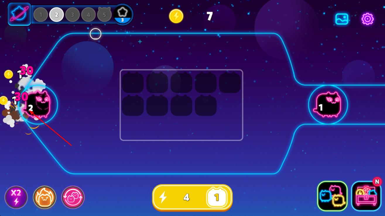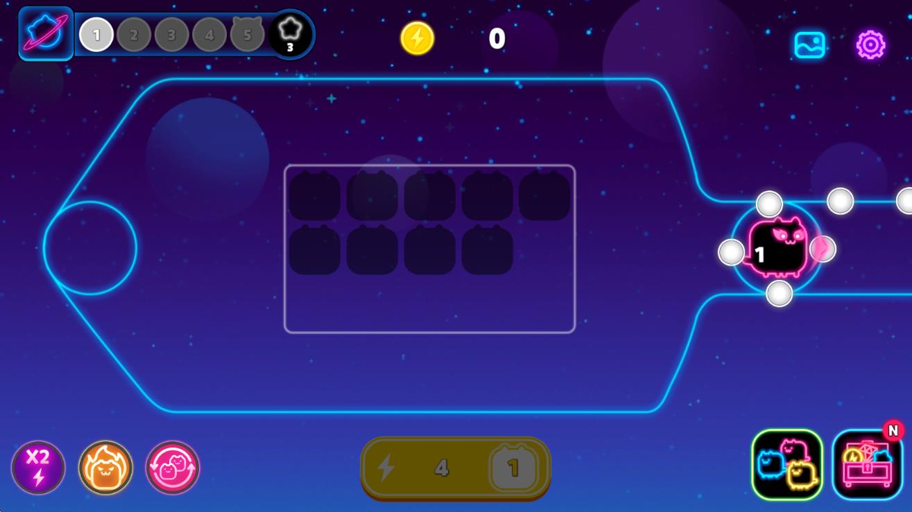 2、在关卡中收集能量币提升猫咪等级,通过合成解锁具有AOE、减速等技能的特殊猫咪,强化防线应对更强敌人。