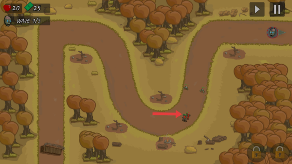 2、防御的士兵自动生成,防御单位自动沿路径就位,等待着僵尸首次波次的来袭,准备迎击。
