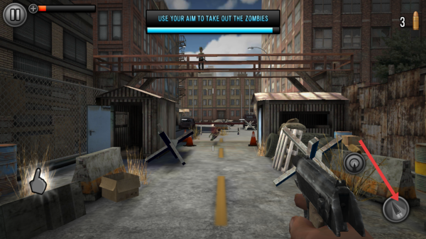 2、面对远处僵尸,预判移动轨迹,利用枪械射程,按提示USE YOUR AIM TO TAKE OUT THE ZOMBIES。