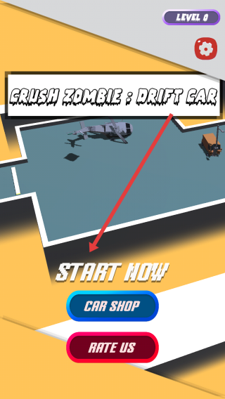 1、点击START-NOW按钮,进入Crush-Zombie;-Drift-Car游戏,初始等级为0,开启漂移碾压僵尸的冒险,可先熟悉界面功能再启程。