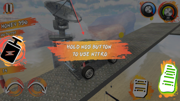 3、遇陡坡等场景,需要按提示长按氮气键使用加速,按住左侧氮气图标,触发nitro提升车速。