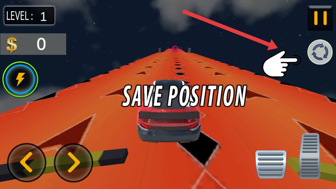 1、在Level1的赛道,点击右侧循环箭头图标旁的指引,按提示SAVE POSITION保存赛车当前位置。