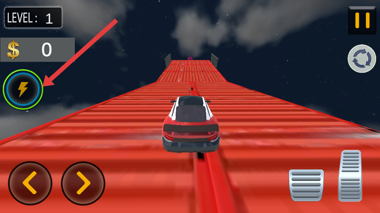 3、如果遭遇赛道坡道阻碍时,需要点击左侧闪电的图标,触发氮气加速,助力赛车突破难关。