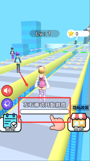 1、开局先熟悉跑酷节奏,角色会自动前进,你只需要点屏幕跳跃或下滑躲障碍,注意看前方路况,提前预判起落时机。