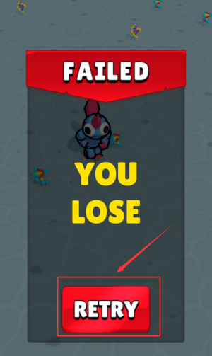 4、点击红框RETRY按钮,游戏失败后重新开始。