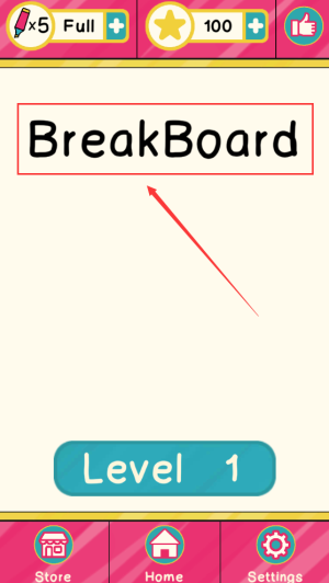 1、点击红框Level1按钮,开始BreakBoard游戏第一关。