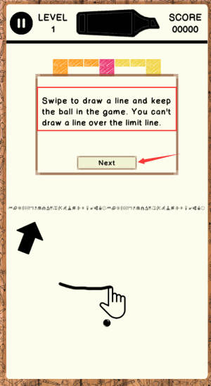 3、滑动绘制黑线,保持球在游戏区域内不越界。