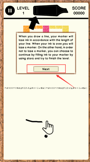 1、基础操作直观易懂,在屏幕任意位置划出引导线,利用重力让弹球沿轨迹滚动,收集沿途散落的颜料罐即可完成关卡目标。
