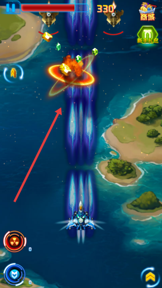 2、武器搭配策略:前期用散射武器应对杂兵,中期解锁跟踪导弹锁定BOSS,后期搭配激光炮与护盾,依敌机类型切换主副武器。