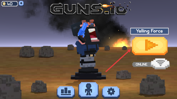 1、点击GUNS.IO主界面Yelling Force模式播放键,进入像素战场,操控角色Yelling Force加入对战。