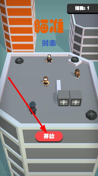 1、进入游戏界面,看到任务1,点击建筑上的红色开始的按钮,启动关卡,准备执行射击任务。