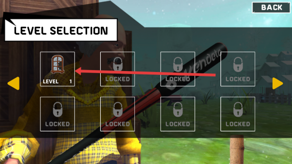 3、关卡选择界面中,点击唯一解锁的LEVEL-1图标,进入游戏第一关,凭借所选武器展开破坏挑战,推进游戏进程。
