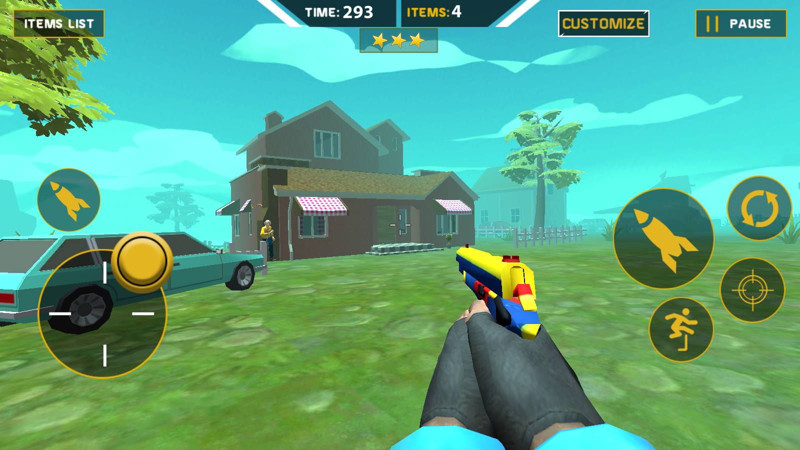 3、搜寻目标与通关破坏:仔细搜寻邻居家的每个房间,锁定道具并精准射击破坏,确保所有目标被粉碎;在破坏过程中感受物品破碎的解压音效,完成关卡挑战。