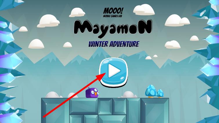 1、在游戏标题界面,点击蓝色带白色三角形的播放按钮,开始Mayamon WINTER ADVENTURE游戏之旅。