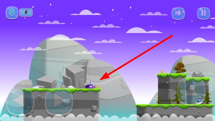 3、操控紫色角色,按箭头指引方向,在绿色地形上移动,跨越障碍,探索关卡。