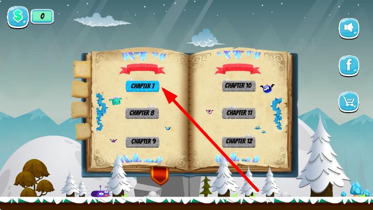 2、进入章节选择界面,点击标有CHAPTER 1的蓝色按钮,开启游戏第一章的冒险关卡。
