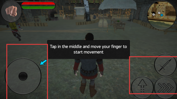 3、战斗与移动操作:左侧虚拟摇杆控制角色移动,右侧按钮对应攻击、冲刺等动作,按提示“Tap in the middle...”操作,适应战斗节奏。