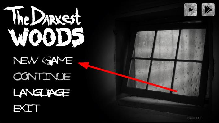 1、进入游戏主界面,点击NEW GAME,开启这场黑暗树林的恐怖冒险之旅,正式踏入未知剧情。