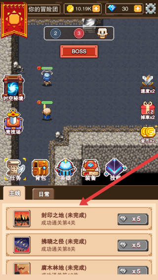 3、可以查看自己的任务列表,切换到主线任务栏,选择如封印之地未完成等任务,通关获取钻石奖励。