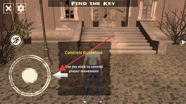 3、在FIND THE KEY任务关卡,根据提示,使用左侧虚拟摇杆控制角色移动,朝着房屋方向探索寻找钥匙。