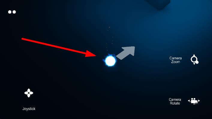 3、在场景中,操控蓝色光球沿箭头方向移动,可结合左侧“Joystick”操作移动,右侧功能键调整视角。