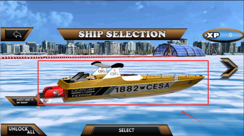 3、在船坞系统中浏览并选择适合的快艇,不同型号具备差异化性能参数。