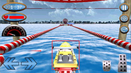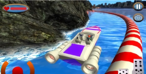 4、操控快艇在湍急水道上飞驰,通过灵活转向规避障碍并保持领先优势。