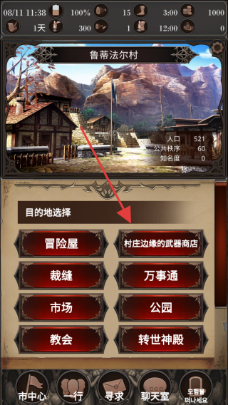 3、在村庄,选“冒险屋接任务武器商店买装备,探索场景,提升角色,完成初期目标,适应游戏机制,展开冒险之旅。