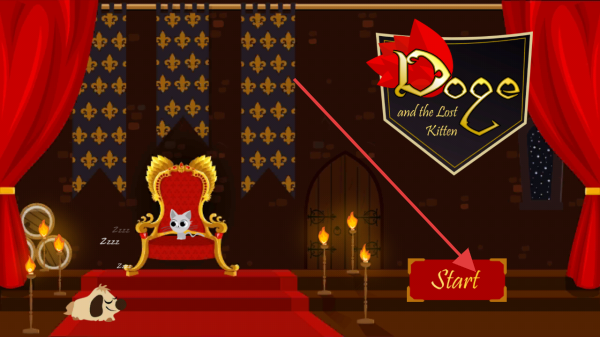 1、打开Doge and the Lost Kitten,点击Start开始游戏,进入城堡王座室,开启拯救小猫冒险。