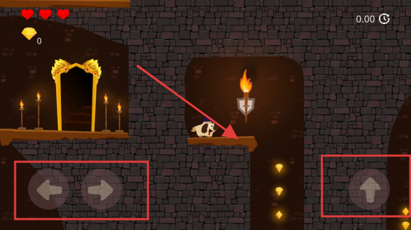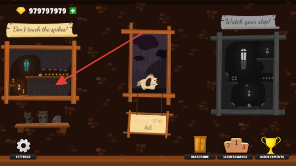 2、在关卡选择,选箭头指向关卡,进入地宫,按提示操控狗狗,利用左右、跳跃键,避开尖刺,收集钻石。