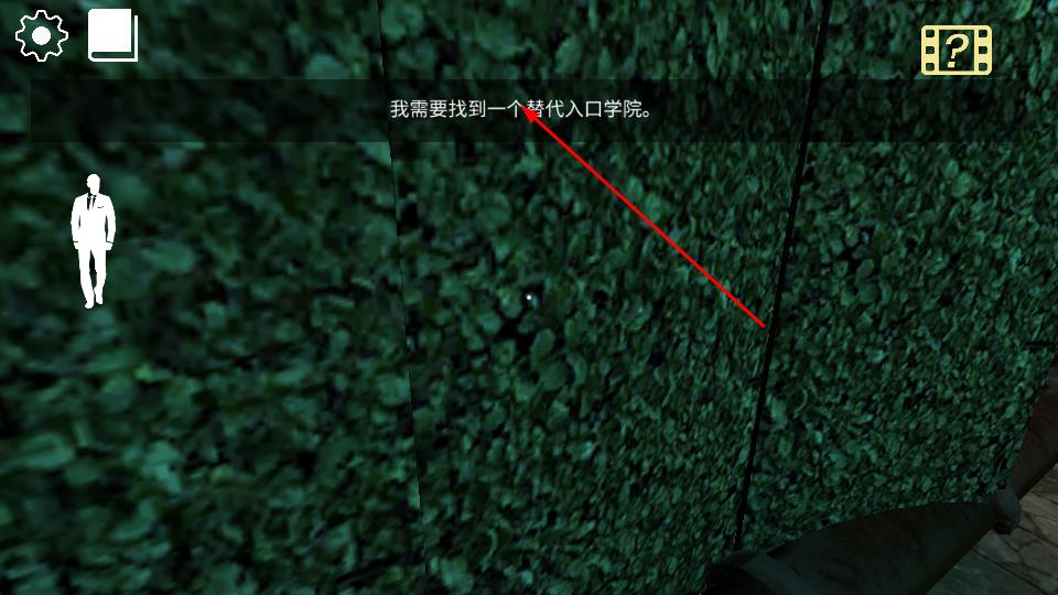 2、探索指引跟随屏幕浮现的文字提示如我需要找到一个替代入口学院,操控白色剪影角色在植被墙、砖石巷道等环境移动,推进入口寻找任务。