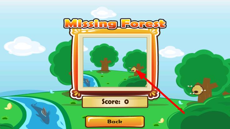 2、进入Missing Fores场景选择,点击箭头指向的画面区域,确认进入该森林关卡,开始探索。