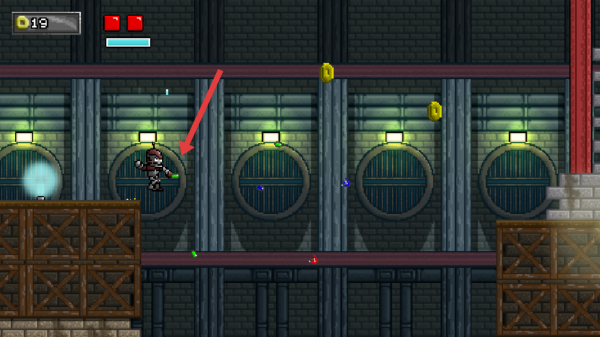 2、遇到敌人时,点击射击键发射子弹,优先消灭靠近的敌人,注意血量红、蓝条,吃场景道具金币。