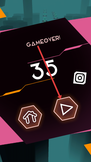 3、游戏结束后,点击右侧三角形按钮重新开始,突破35分记录,穿梭中优化操作,争取更高分数,延续无尽旅行的乐趣。