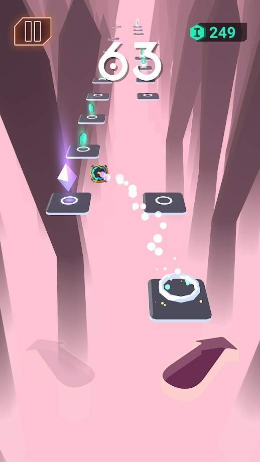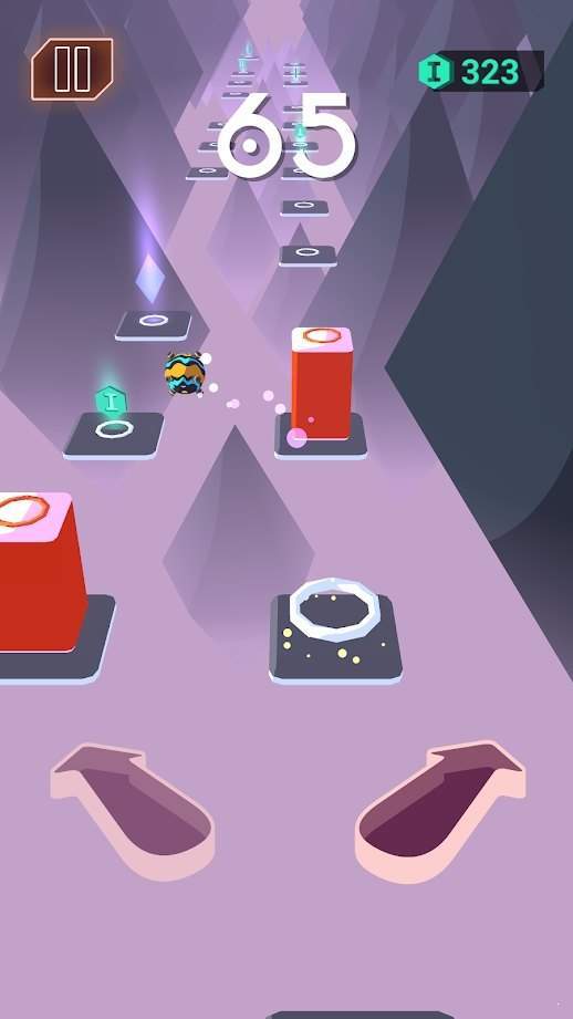 1、节奏驱动的障碍挑战:需紧跟音乐节奏滑动改变方向、跳跃,躲避墙壁与隐藏机关,对反应力要求极高,每一次操作都需与节拍同步。